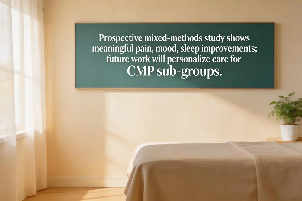The mixed‑methods study leveraged three complementary approaches—to first, a retrospective electronic‑medical‑record cohort (EMR) identified chronic musculoskeletal pain (CMP) patients; second, qualitative focus groups and in‑depth interviews with patients, allopathic physicians, and acupuncture/chiropractic (A/C) practitioners explored decision‑making factors; third, a prospective 12‑month cohort enrolled 200 acupuncture and 200 chiropractic participants matched to controls. Prospective findings showed clinically meaningful reductions in Brief Pain Inventory severity (‑1.5 points) and interference (‑1.7 points), lower opioid prescribing, and higher satisfaction among A/C users. Patient‑reported outcomes captured via BPI, SF‑12, PHQ‑8, GAD‑2, and ISI demonstrated improvements in pain, mood, sleep, and functional impairment. Future work will apply the transportable mixed‑methods framework to identify which CMP sub‑groups benefit most, refine cost‑analysis models, and integrate patient‑driven insights into personalized, holistic pain‑management pathways.