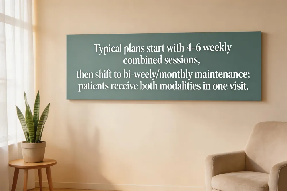 A typical integrated treatment plan starts with four to six weekly visits, each combining both modalities. After the initial phase, patients often transition to a bi‑weekly or monthly maintenance schedule, depending on symptom improvement and functional goals.