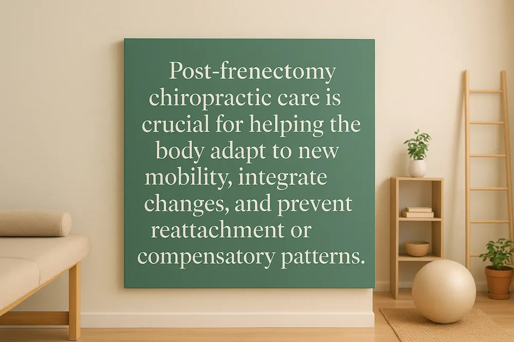 A frenectomy changes the dynamics of the entire oral-fascial system. The tension from the tethered tissue often created compensatory tension down to the collarbone, sternum, and spine. After a release, the musculature in the mouth, jaw, neck, shoulders, and spine can shift dramatically. The body's nervous system must now learn to use these muscles in new, more efficient ways, a process that requires neurological integration and physical rebalancing.