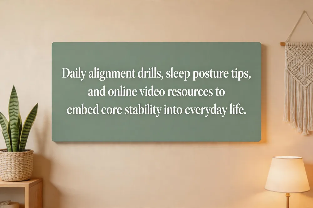 Key takeaways for core stability are that a strong, balanced core—comprised of deep stabilizers like the transverse abdominis and multifidus, plus supportive muscles such as the glutes, erector spinae, and obliques—maintains a neutral spine, reduces excessive joint loading, and protects against low‑back pain. Integrating these exercises into daily life is simple: begin each day with a brief warm‑up (5‑minute walk or marching in place), then perform a core routine (bird‑dog, plank, glute bridge, dead‑bug, and side‑plank) for 2–3 sets, 8‑15 reps, 2–3 times per week. Incorporate micro‑sessions during work breaks—standing up for a pelvic‑tilt, doing a wall‑supported side‑plank, or marching hip bridges while watching a video. Seek professional guidance when pain persists beyond a week, when exercises provoke sharp discomfort, or if you have a history of spinal surgery, chronic conditions, or neurological symptoms; a chiropractor, physical therapist, or physician can tailor the program, ensure proper form, and rule out serious pathology.