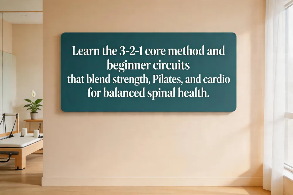 What is the 3‑2‑1 core method? The 3‑2‑1 core method is a weekly training split that balances three strength‑training sessions, two Pilates‑focused sessions, and one cardio workout. By rotating these modalities each week it promotes strength, core stability, flexibility, and health. The method is flexible, allowing adjustments in duration, intensity, and equipment to match fitness level. It supports injury‑prevention and posture improvement, key goals in chiropractic care, providing a sustainable, holistic routine for a healthy spine.