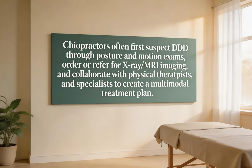 A chiropractor can be the first clinician to suspect degenerative disc disease (DDD) through a thorough history, posture assessment, range‑of‑motion and neurologic tests. However, definitive diagnosis requires imaging—typically X‑rays or MRI—which the chiropractor can order or refer for. The images reveal disc dehydration, loss of height, bulging or other structural changes that confirm DDD.