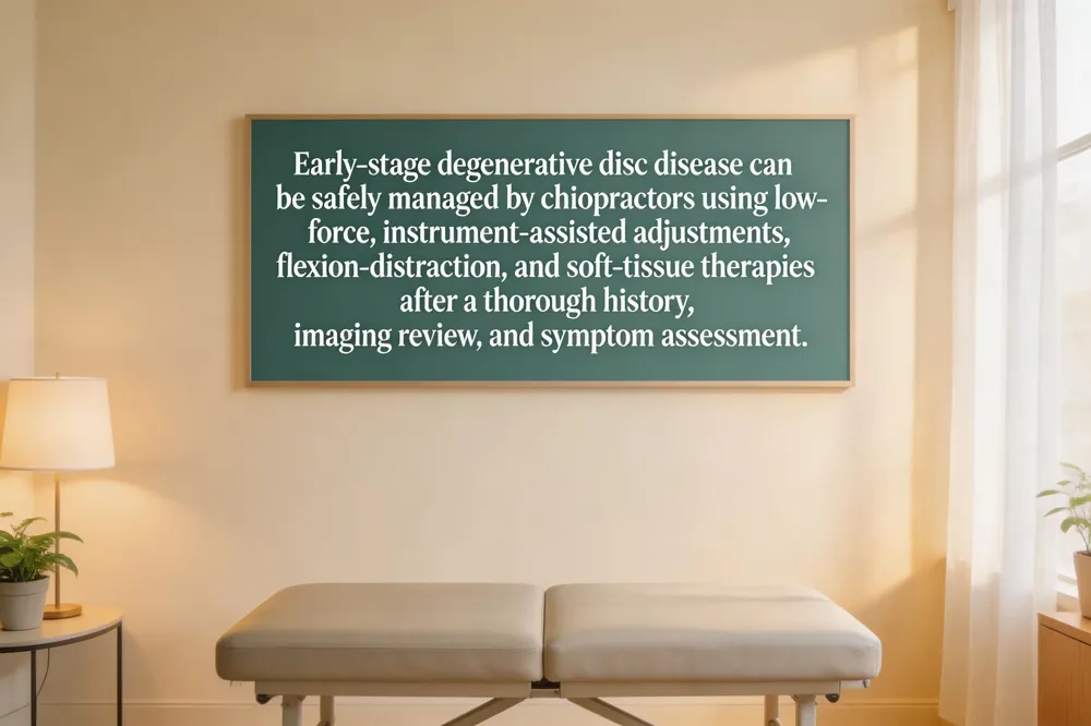 Yes, especially in early‑stage DDD. Qualified chiropractors employ gentle adjustments, flexion‑distraction, instrument‑assisted techniques, and adjunct therapies (massage, exercise, laser, TENS) to reduce pain and improve mobility, while referring advanced cases to specialists.