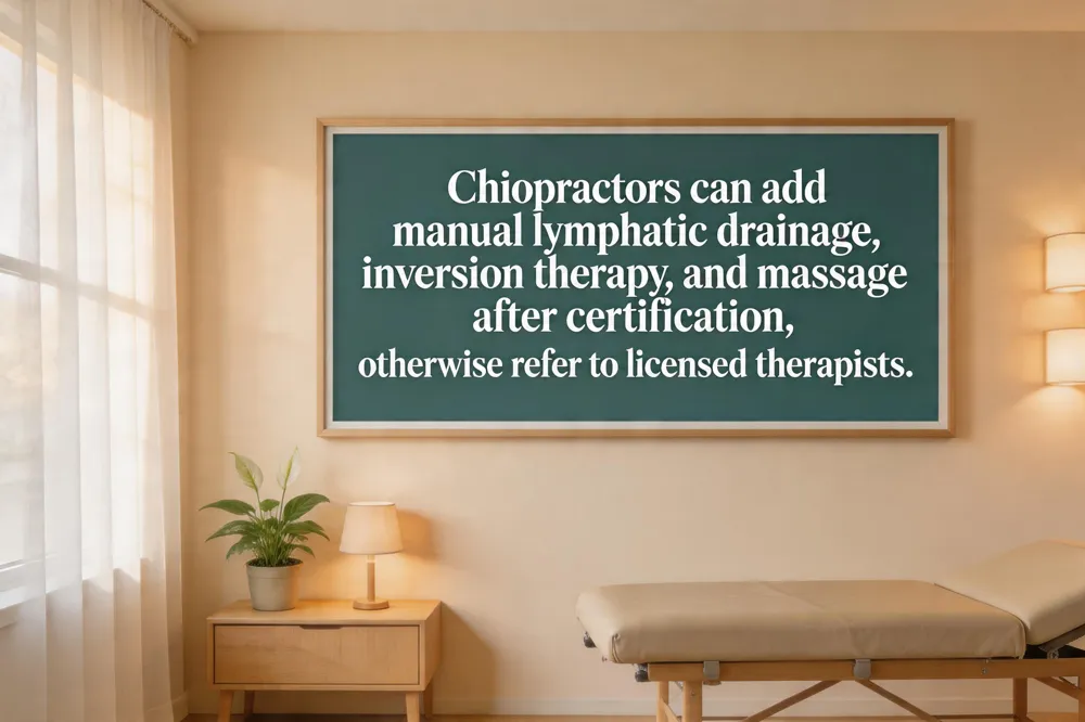 Regarding lymphatic drainage, chiropractors who complete specialized training can incorporate manual lymphatic‑drainage techniques, inversion therapy, or gentle massage to reduce swelling and support the body’s waste‑removal system. If a practitioner lacks the certification, they typically refer patients to a licensed therapist. Focus Academy’s Elite Access mentorship further equips clinicians with the communication and practice‑management skills needed to integrate these services seamlessly into a family‑focused, affordable care model.
