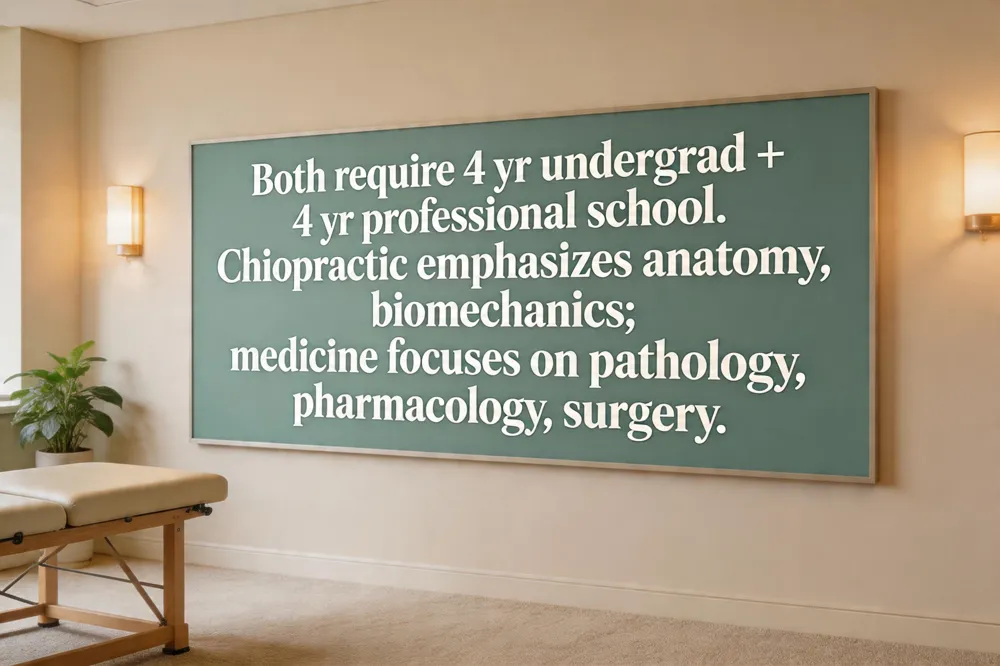 Both chiropractic and medical programs require four years of undergraduate pre‑medical coursework followed by four years of professional school, so the overall time commitment is comparable. The basic sciences—anatomy, physiology, pathology, chemistry, and microbiology—are taught in both tracks, but the distribution of hours differs: chiropractic students spend more time on anatomy, neurology, orthopedics, biomechanics, and radiology, while medical students devote more hours to pathology, pharmacology, obstetrics/gynecology, psychiatry, and surgery. Clinical training also varies; chiropractors complete most of their hands‑on patient work during school, whereas physicians continue extensive clinical rotations and often a residency after graduation. Because each curriculum emphasizes different skill sets, the perceived difficulty is largely personal—students who thrive on manual‑therapy techniques may find chiropractic school more manageable, while those drawn to pharmacology and surgery may prefer medical school. Ultimately, both paths are academically rigorous and require passing demanding national board exams before licensure.