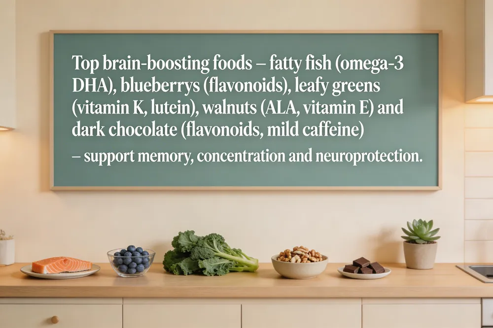 - Fatty fish (salmon) – omega‑3 DHA for neuronal membranes.