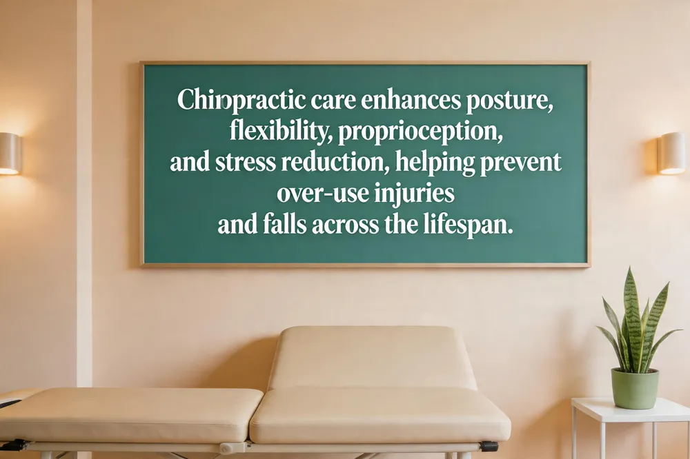 Nervous system communication The spine houses the central conduit for nervous signals. Misalignments (subluxations) can irritate nerves, impairing muscle coordination, balance, and proprioception. When adjustments clear these interferences, neural pathways fire efficiently, supporting better coordination, faster reaction times, and reduced fall risk—especially in older adults and athletes. Systematic reviews report that preventive chiropractic care reduces low‑back pain episodes by up to 30 % and lowers the incidence of work‑related musculoskeletal injuries by a similar margin, underscoring the role of optimal nerve function in injury prevention.