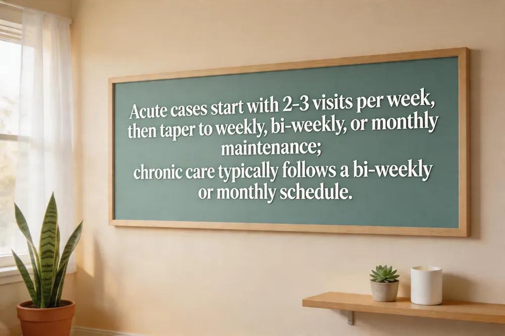 Regular chiropractic care should be tailored to the nature of the condition and the patient’s goals. For acute or severe pain, clinicians often start with an intensive phase of two to three appointments per week for the first two to four weeks, allowing the body to respond promptly and jump‑start healing. As symptoms subside, the schedule is tapered to once‑weekly visits, then to every two weeks or monthly for maintenance. This gradual reduction helps avoid overstimulation while ensuring the spine remains aligned. In contrast, chronic or moderate discomfort typically requires a maintenance schedule of one visit every two weeks or once a month. Such a cadence keeps joint mobility and muscle tension in check, supports proper nervous‑system function, and reduces the likelihood of new strains or sprains.