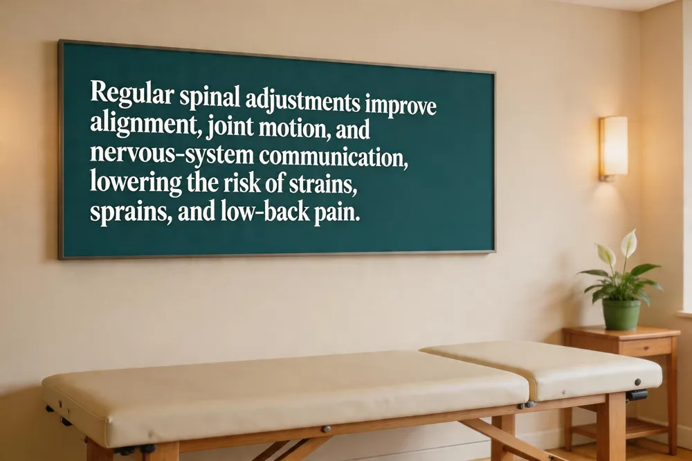 Regular adjustments keep vertebrae in their proper places, reducing abnormal stress on muscles, joints, and ligaments. By restoring healthy joint motion, the spine can distribute physical loads evenly, which lowers the risk of strains, sprains, and over‑use injuries. Studies consistently show that maintenance care improves flexibility and range of motion, allowing the body to handle daily activities and athletic demands more safely.