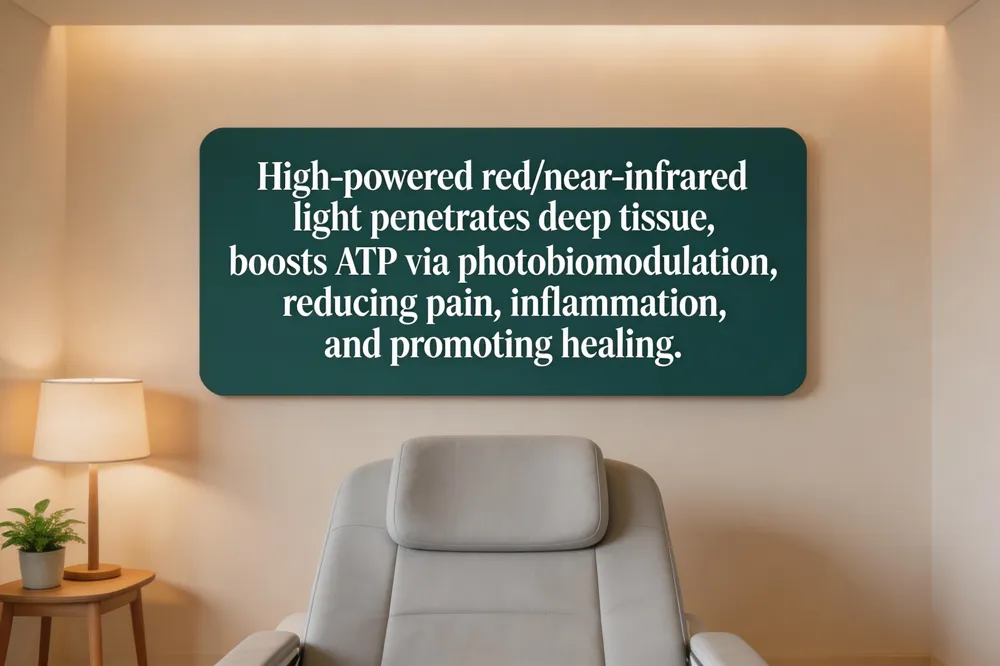 Class 4 laser therapy benefits – Deep, high‑energy light quickly lessens pain and inflammation without drugs or needles, speeds tissue regeneration, and improves range of motion.