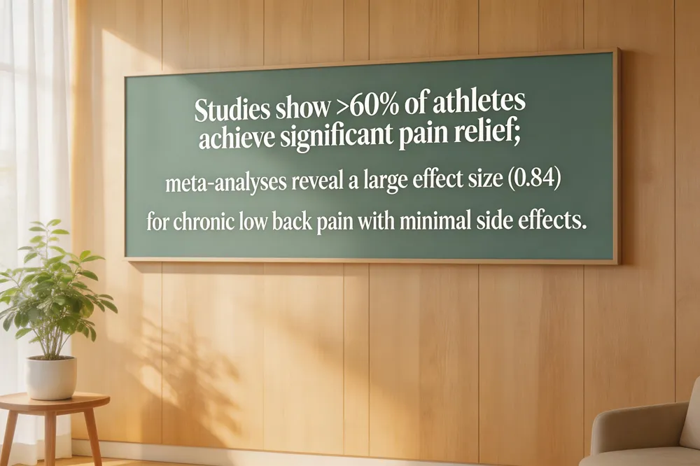 Efficacy for back pain: Meta‑analyses of 22 trials show a large effect size (0.84) for chronic low‑back pain, and patients often experience immediate analgesia and improved range of motion after 5‑10 minute sessions.