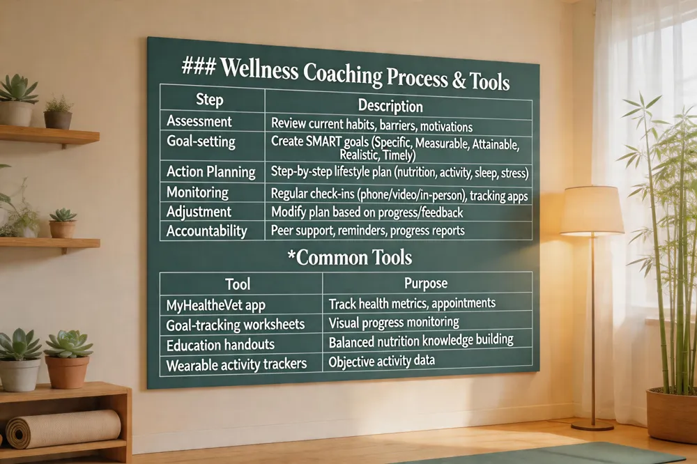 Role of a wellness coach – Coaches serve as educators, motivators, and accountability partners. They assess a veteran’s current habits, help set SMART (Specific, Measurable, Attainable, Realistic, Timely) goals, and guide the veteran toward evidence‑based practices such as balanced nutrition, low‑impact aerobic activity, and proper sleep hygiene. Many coaches hold credentials like the NBC‑HWC, ensuring adherence to ethical standards.